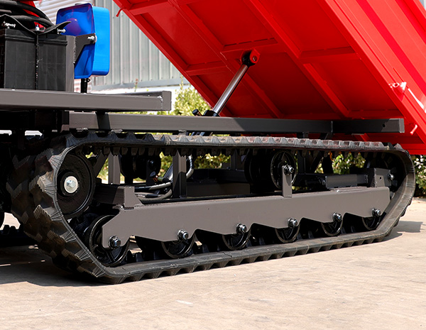 Mini crawler dumper truck is a dump truck made of rubber crawler chassis, suitable for short-distance transportation of complex terrain such as building material stores, farms, construction sites, etc.